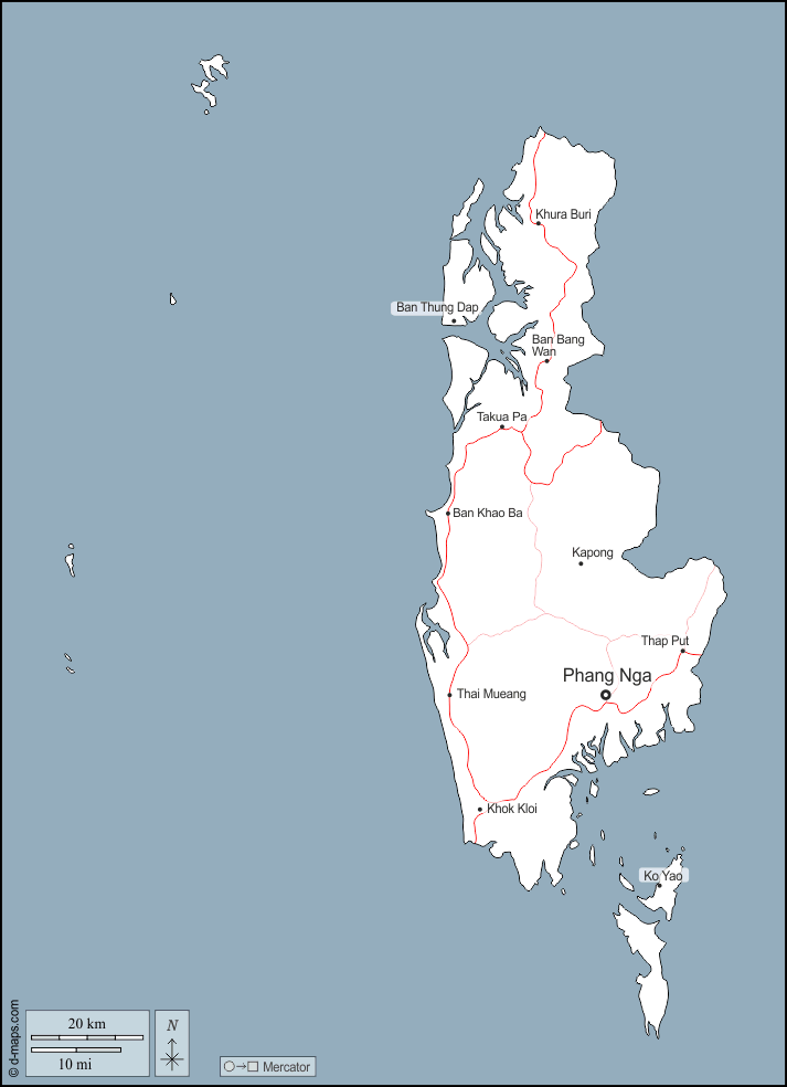d-maps > एशिया > थाईलैंड > फंग अंगा प्रान्त > बाह्यरेखा, मुख्य शहरों, सड़कों, नाम