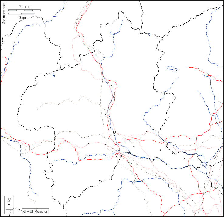 d-maps > एशिया > जापान > गुनमा > सीमाओं, जल-सर्वेक्षण, मुख्य शहरों, सड़कों, सफेद