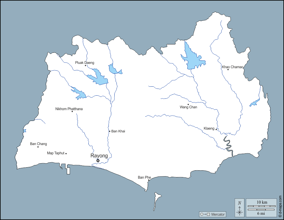 d-maps > एशिया > थाईलैंड > रयोंग प्रान्त > बाह्यरेखा, जल-सर्वेक्षण, मुख्य शहरों, नाम