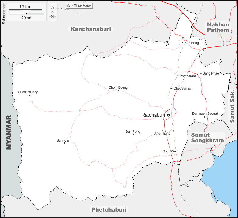 d-maps > एशिया > थाईलैंड > रात्चाबुरी प्रान्त > सीमाओं, मुख्य शहरों, सड़कों, नाम