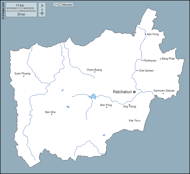 d-maps > एशिया > थाईलैंड > रात्चाबुरी प्रान्त > बाह्यरेखा, जल-सर्वेक्षण, मुख्य शहरों, नाम