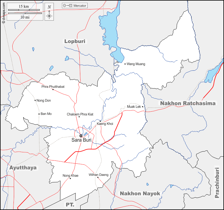 d-maps > एशिया > थाईलैंड > सराबुरी प्रान्त > सीमाओं, जल-सर्वेक्षण, मुख्य शहरों, सड़कों, नाम