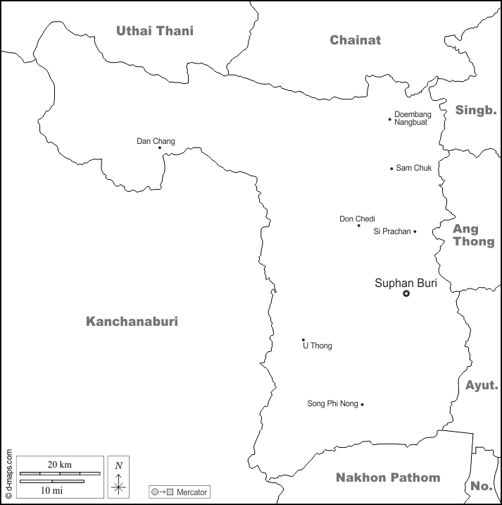 d-maps > एशिया > थाईलैंड > सुफन बुरी प्रान्त > सीमाओं, मुख्य शहरों, नाम, सफेद