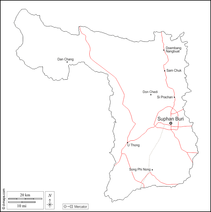 d-maps > एशिया > थाईलैंड > सुफन बुरी प्रान्त > बाह्यरेखा, मुख्य शहरों, सड़कों, नाम, सफेद