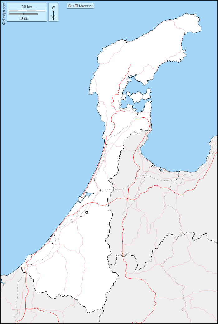 d-maps > एशिया > जापान > इशिकावा > सीमाओं, मुख्य शहरों, सड़कों