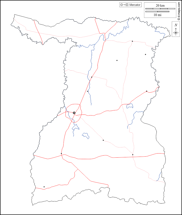 d-maps > एशिया > थाईलैंड > सुरीन प्रान्त > बाह्यरेखा, जल-सर्वेक्षण, मुख्य शहरों, सड़कों, सफेद