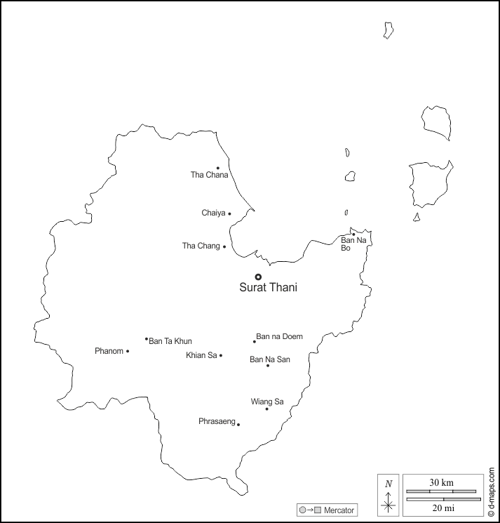 d-maps > एशिया > थाईलैंड > सूरत थानी प्रान्त > बाह्यरेखा, मुख्य शहरों, नाम, सफेद