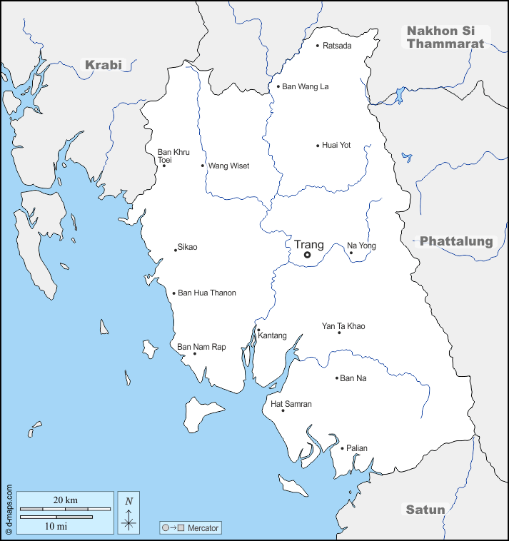 d-maps > एशिया > थाईलैंड > त्रंग प्रान्त > सीमाओं, जल-सर्वेक्षण, मुख्य शहरों, नाम