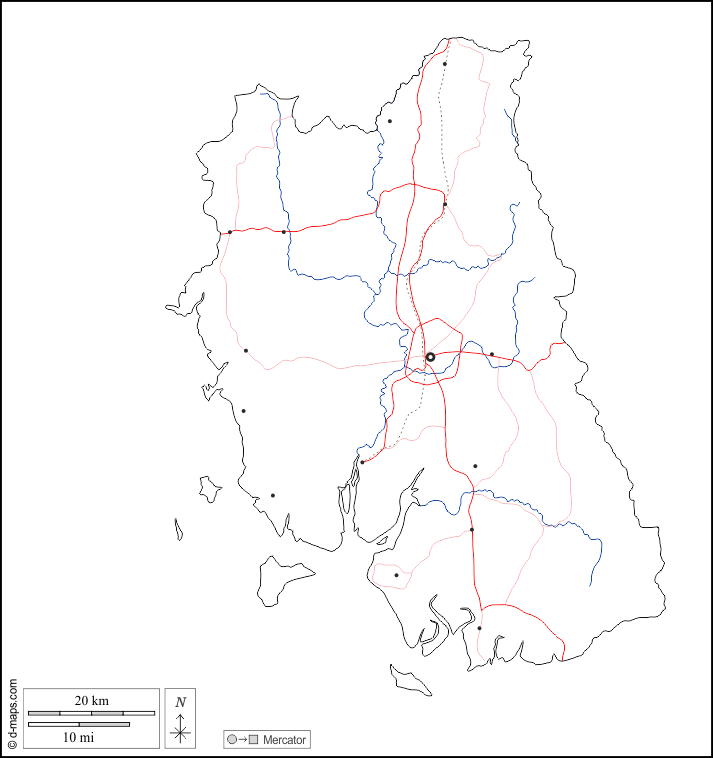 d-maps > एशिया > थाईलैंड > त्रंग प्रान्त > बाह्यरेखा, जल-सर्वेक्षण, मुख्य शहरों, सड़कों, सफेद