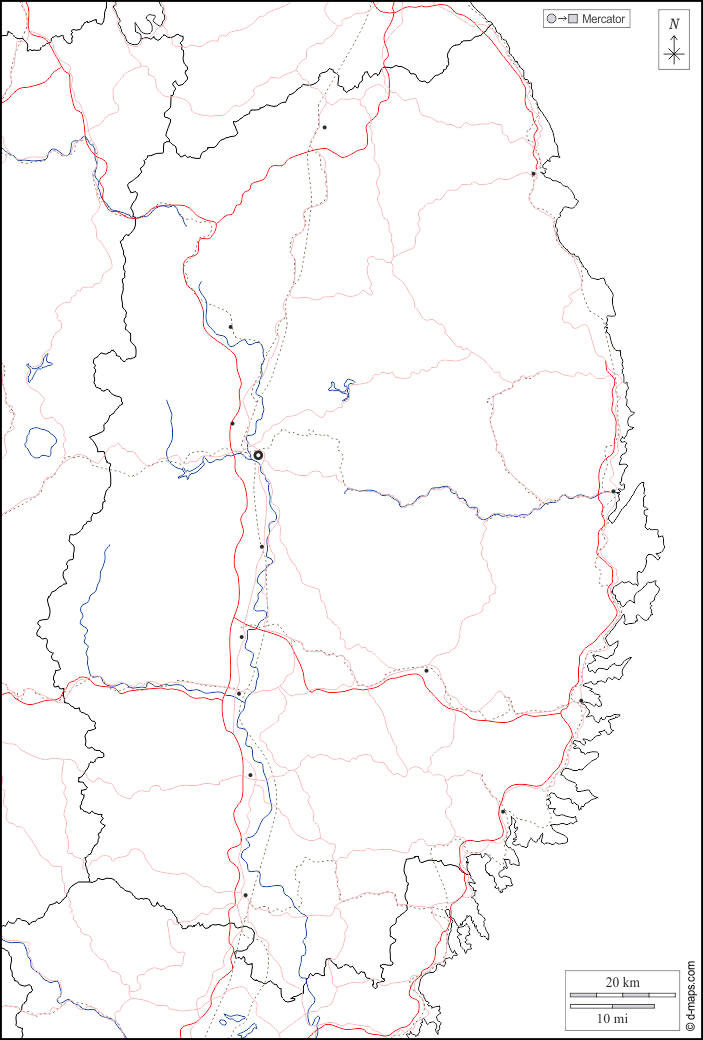 d-maps > एशिया > जापान > इवाते प्रीफ़ेक्चर > सीमाओं, जल-सर्वेक्षण, मुख्य शहरों, सड़कों, सफेद