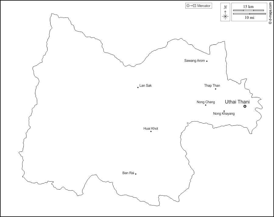 d-maps > एशिया > थाईलैंड > उथाई थानी प्रान्त > बाह्यरेखा, मुख्य शहरों, नाम, सफेद