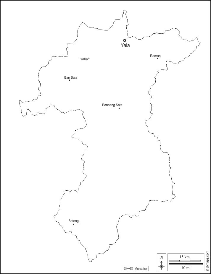 d-maps > एशिया > थाईलैंड > याला प्रान्त > बाह्यरेखा, मुख्य शहरों, नाम, सफेद