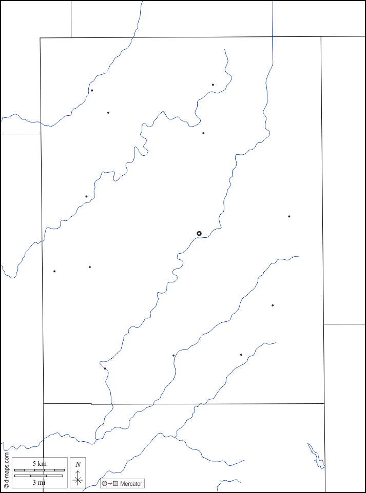d-maps > संयुक्त राज्य > इंडियाना > रश काउंटी > सीमाओं, जल-सर्वेक्षण, मुख्य शहरों, सफेद