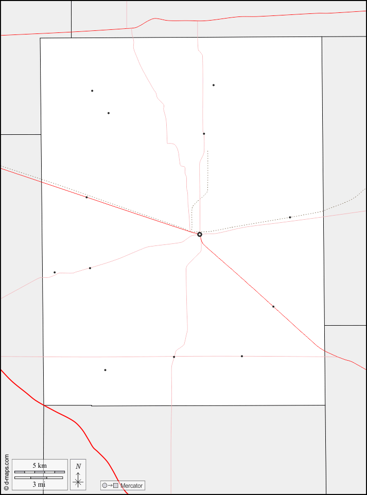 d-maps > संयुक्त राज्य > इंडियाना > रश काउंटी > सीमाओं, मुख्य शहरों, सड़कों