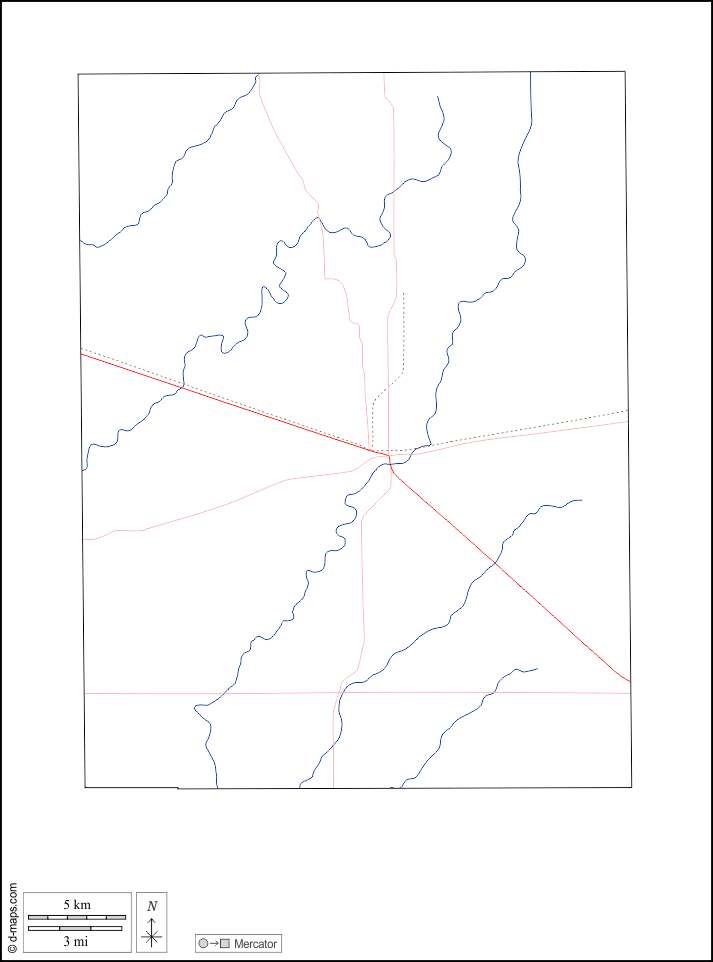 d-maps > संयुक्त राज्य > इंडियाना > रश काउंटी > बाह्यरेखा, जल-सर्वेक्षण, सड़कों, सफेद