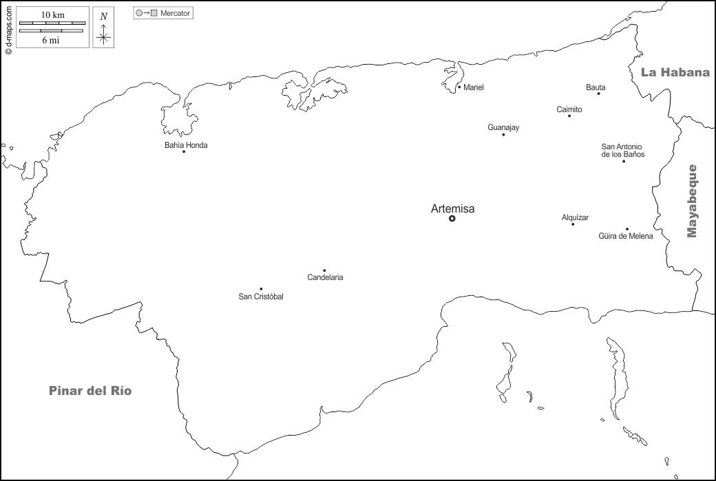d-maps > महाअमेरिका > क्यूबा > आर्टेमिसा प्रांत > सीमाओं, मुख्य शहरों, नाम, सफेद