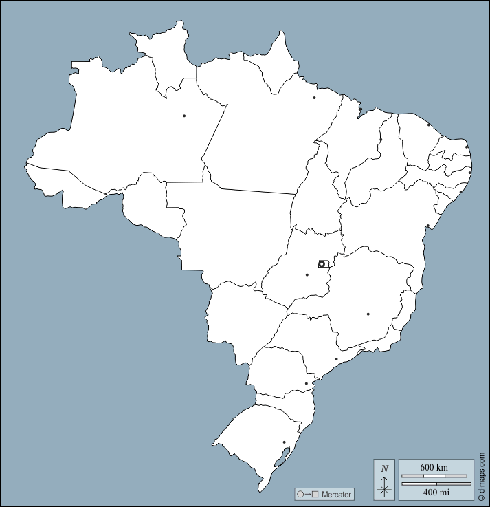 d-maps > महाअमेरिका > ब्राज़ील > ब्राज़ील > बाह्यरेखा, राज्यों, मुख्य शहरों