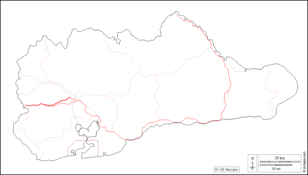 d-maps > महाअमेरिका > क्यूबा > ग्वांतानामो प्रांत > बाह्यरेखा, सड़कों, सफेद