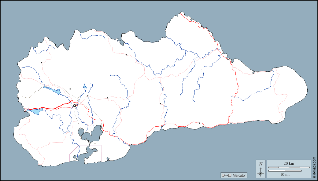 d-maps > महाअमेरिका > क्यूबा > ग्वांतानामो प्रांत > बाह्यरेखा, जल-सर्वेक्षण, मुख्य शहरों, सड़कों