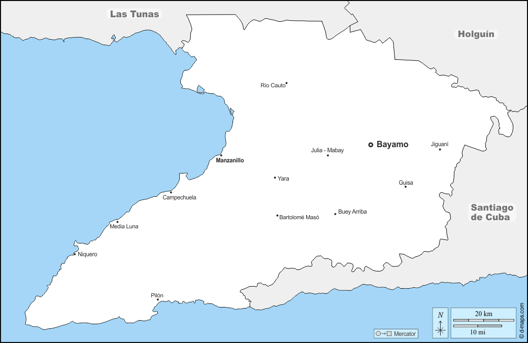 d-maps > महाअमेरिका > क्यूबा > ग्रानमा प्रांत > सीमाओं, मुख्य शहरों, नाम