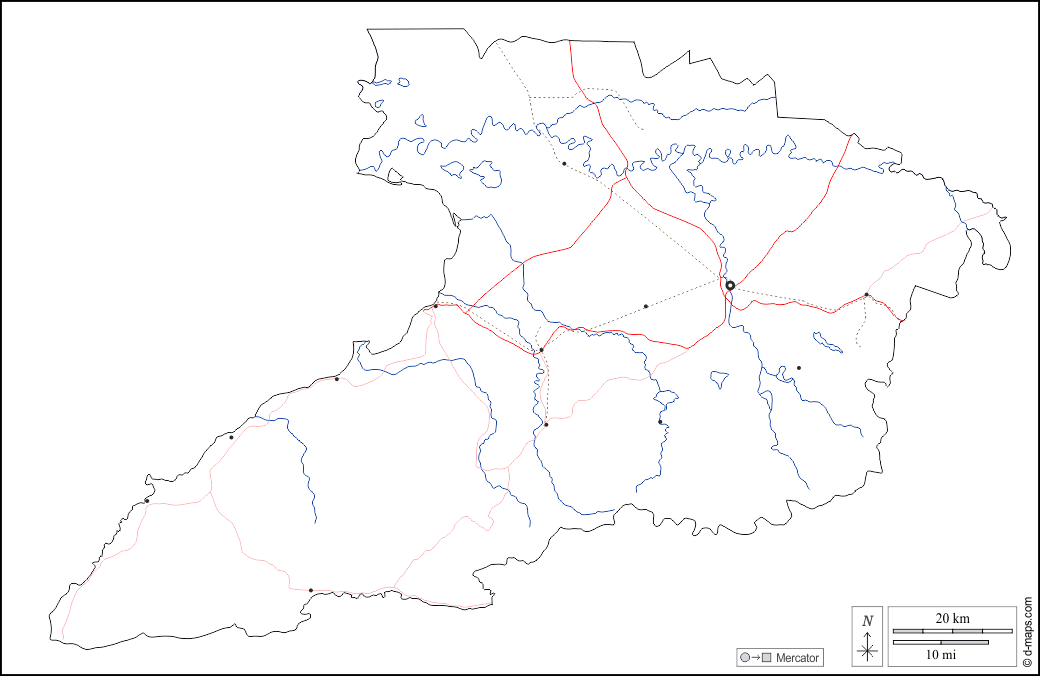 d-maps > महाअमेरिका > क्यूबा > ग्रानमा प्रांत > बाह्यरेखा, जल-सर्वेक्षण, मुख्य शहरों, सड़कों, सफेद