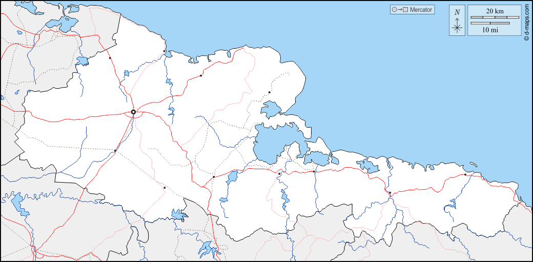 d-maps > महाअमेरिका > क्यूबा > होल्गुइन प्रांत > सीमाओं, जल-सर्वेक्षण, मुख्य शहरों, सड़कों