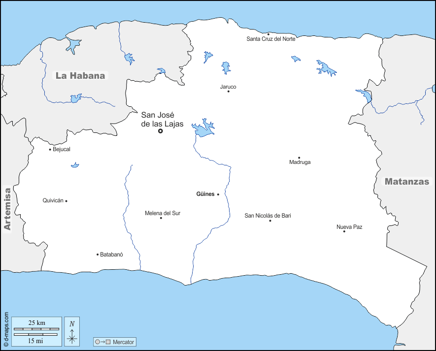 d-maps > महाअमेरिका > क्यूबा > मायाबेक प्रांत > सीमाओं, जल-सर्वेक्षण, मुख्य शहरों, नाम