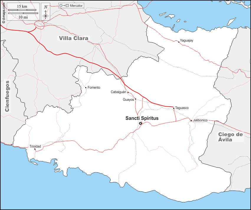 d-maps > महाअमेरिका > क्यूबा > सैंक्टी स्पिरिटस प्रांत > सीमाओं, मुख्य शहरों, सड़कों, नाम