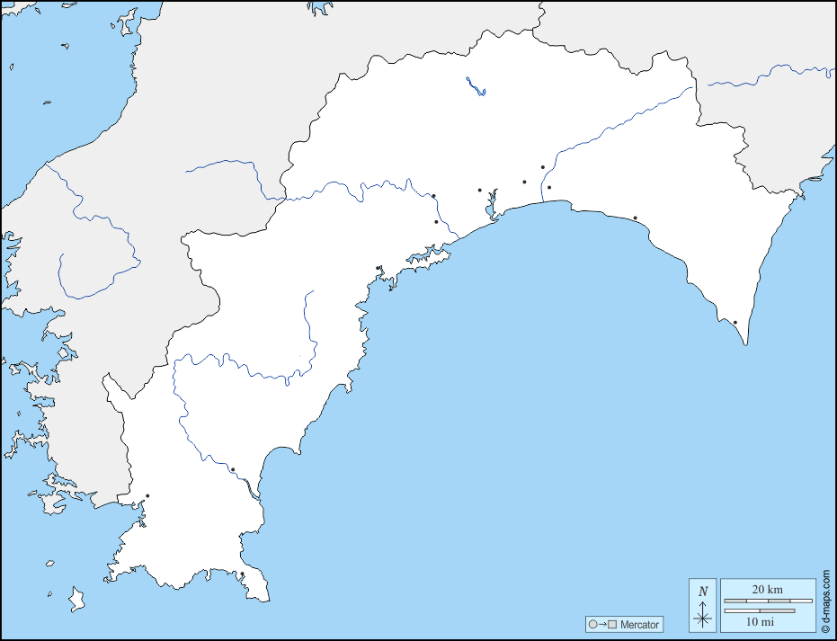 d-maps > एशिया > जापान > कोच्चि > सीमाओं, जल-सर्वेक्षण, मुख्य शहरों