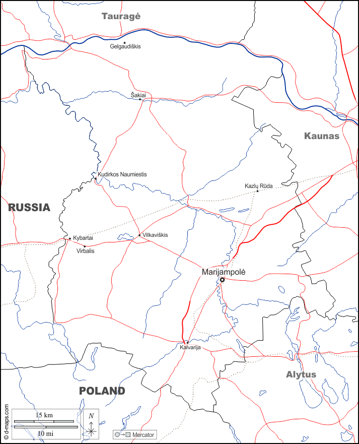 d-maps > यूरोप > लिथुआनिया > मरिजमपोल > सीमाओं, जल-सर्वेक्षण, मुख्य शहरों, सड़कों, नाम, सफेद
