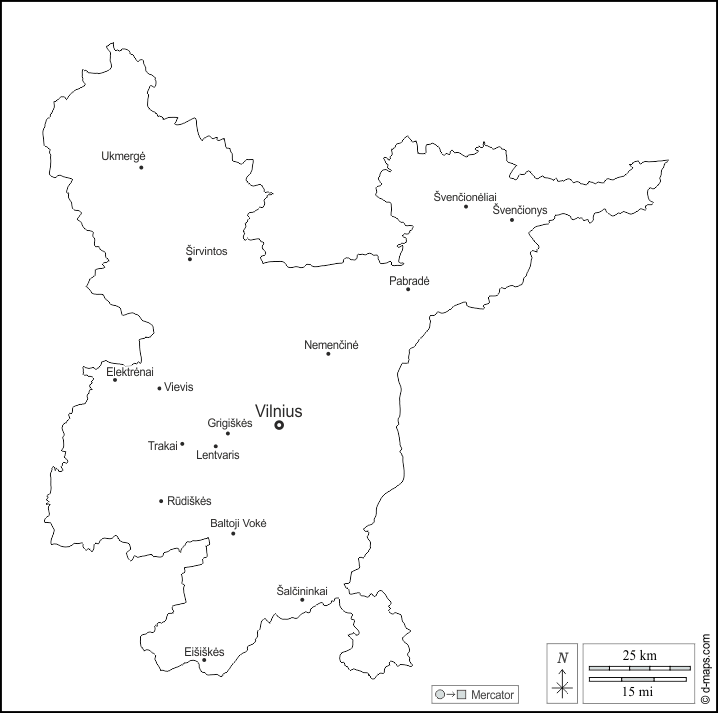 d-maps > यूरोप > लिथुआनिया > विनियस > बाह्यरेखा, मुख्य शहरों, नाम, सफेद