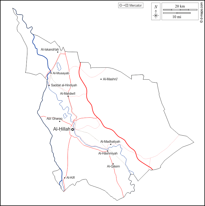 d-maps > एशिया > इराक > बेबीलोन > बाह्यरेखा, जल-सर्वेक्षण, मुख्य शहरों, सड़कों, नाम, सफेद