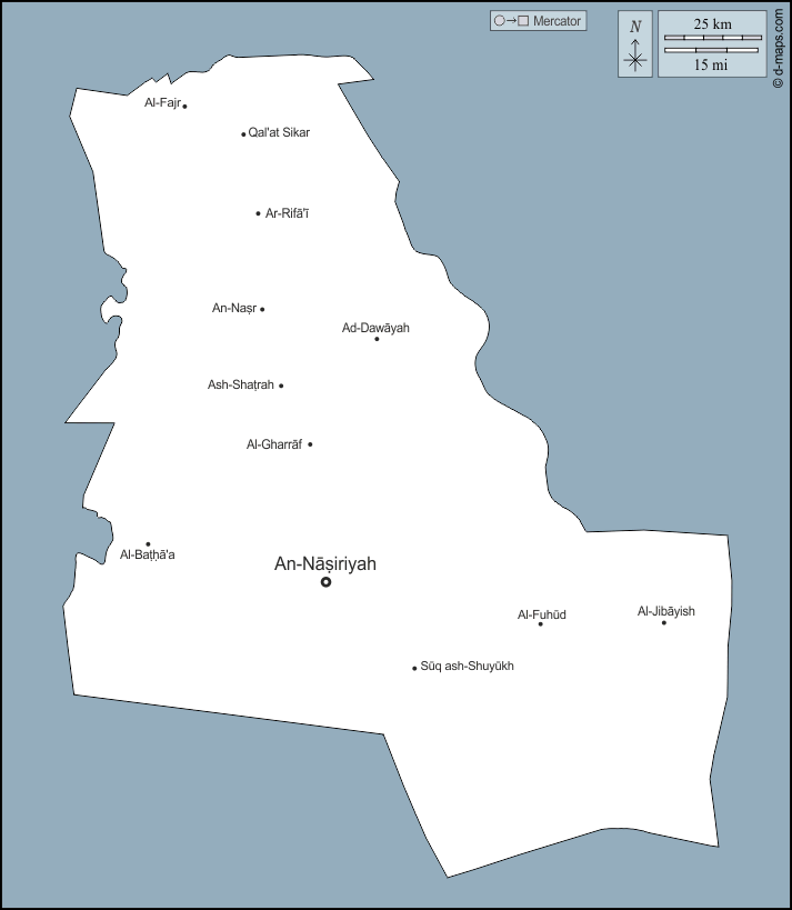 d-maps > एशिया > इराक > धी क़ार > बाह्यरेखा, मुख्य शहरों, नाम