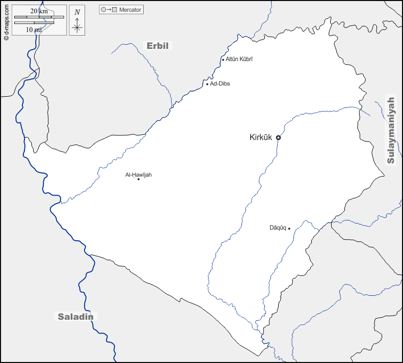 d-maps > एशिया > इराक > किरकुक > सीमाओं, जल-सर्वेक्षण, मुख्य शहरों, नाम
