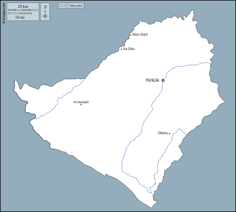 d-maps > एशिया > इराक > किरकुक > बाह्यरेखा, जल-सर्वेक्षण, मुख्य शहरों, नाम