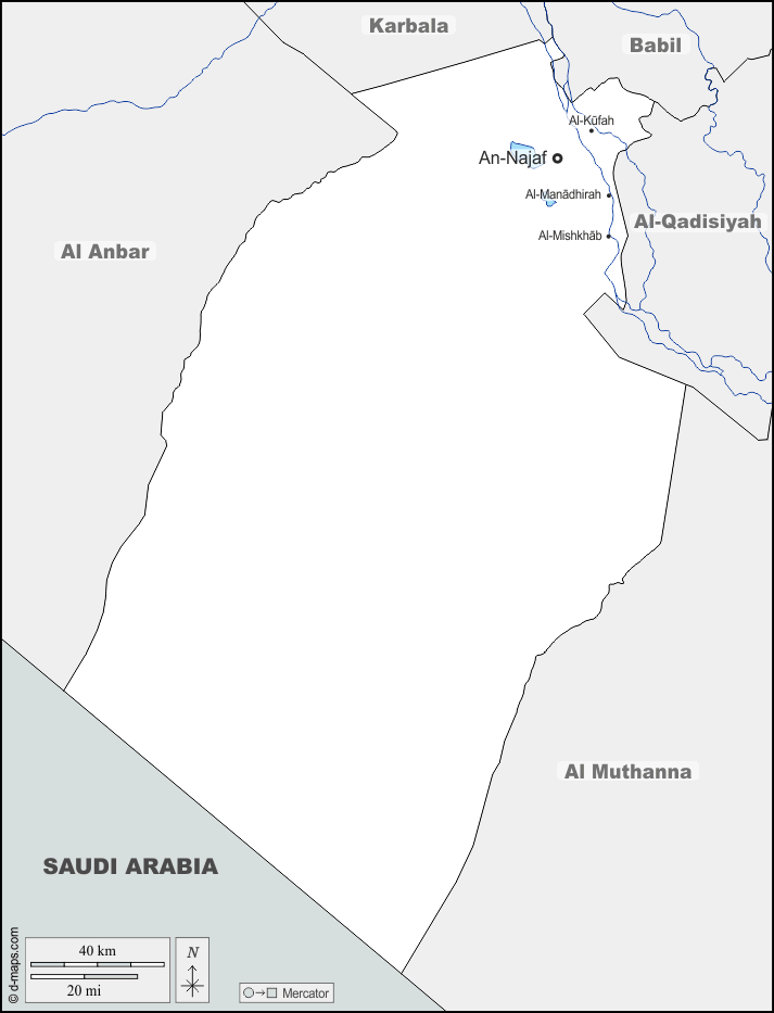 d-maps > एशिया > इराक > नजफ > सीमाओं, जल-सर्वेक्षण, मुख्य शहरों, नाम