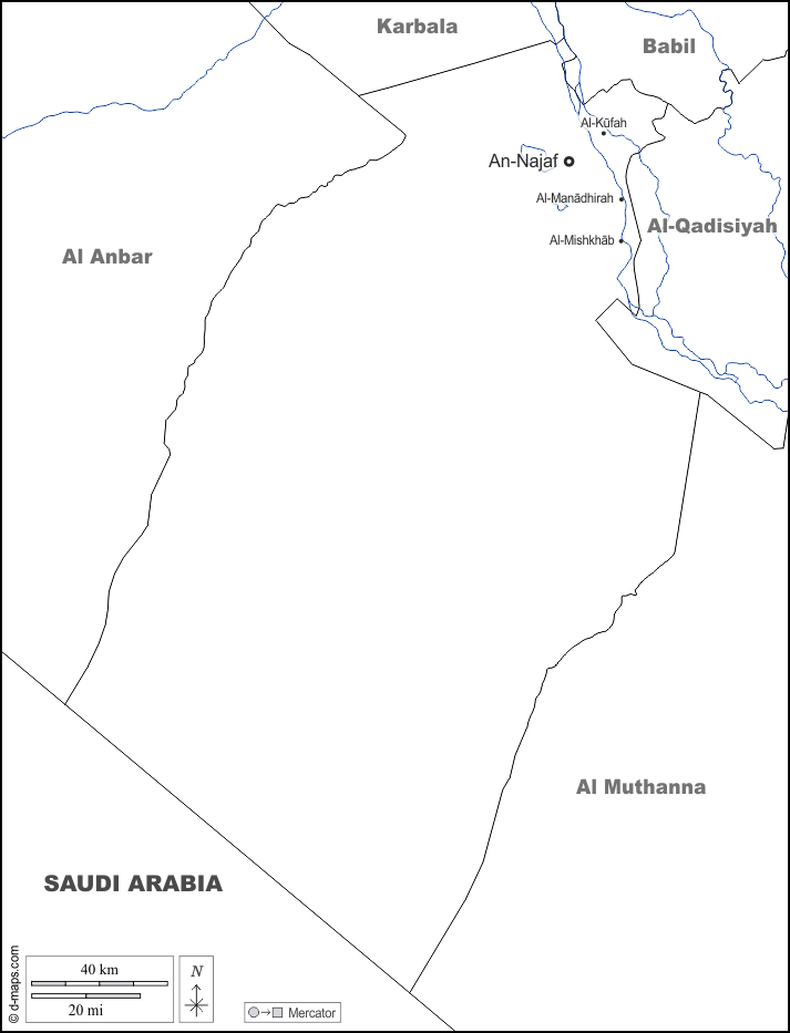 d-maps > एशिया > इराक > नजफ > सीमाओं, जल-सर्वेक्षण, मुख्य शहरों, नाम, सफेद