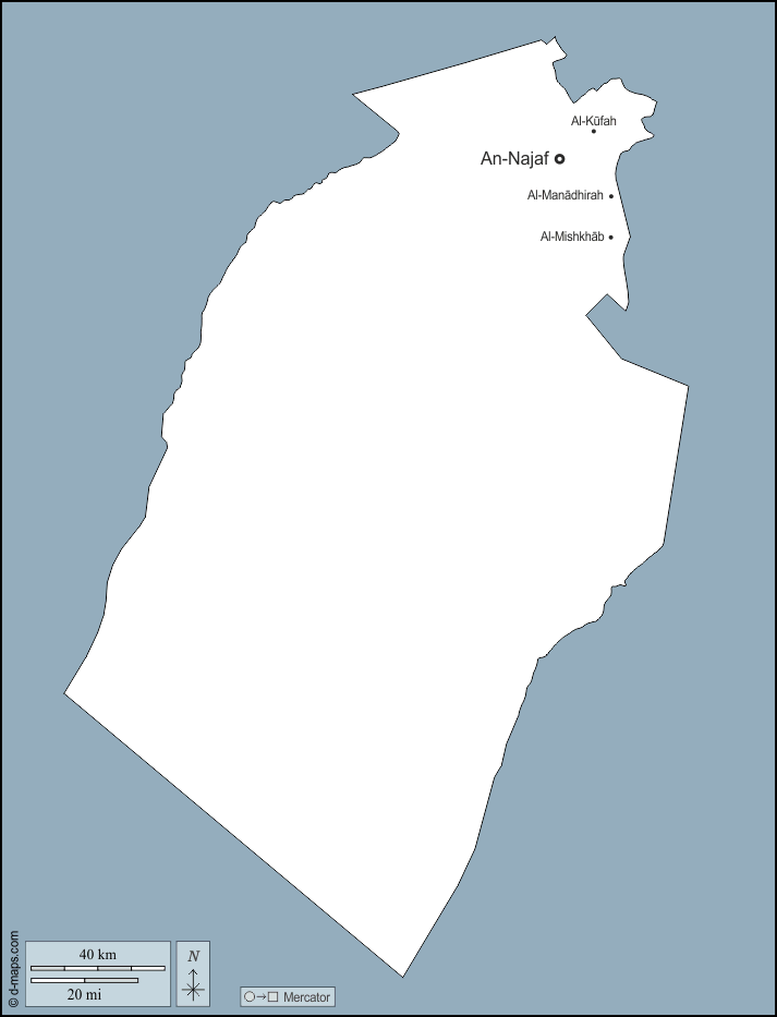 d-maps > एशिया > इराक > नजफ > बाह्यरेखा, मुख्य शहरों, नाम