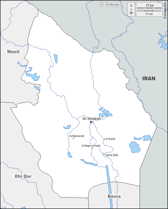 d-maps > एशिया > इराक > मेसैन > सीमाओं, जल-सर्वेक्षण, मुख्य शहरों, नाम