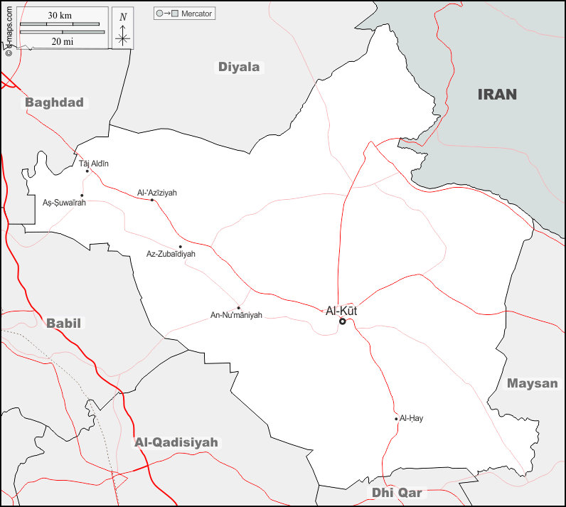 d-maps > एशिया > इराक > यह था > सीमाओं, मुख्य शहरों, सड़कों, नाम