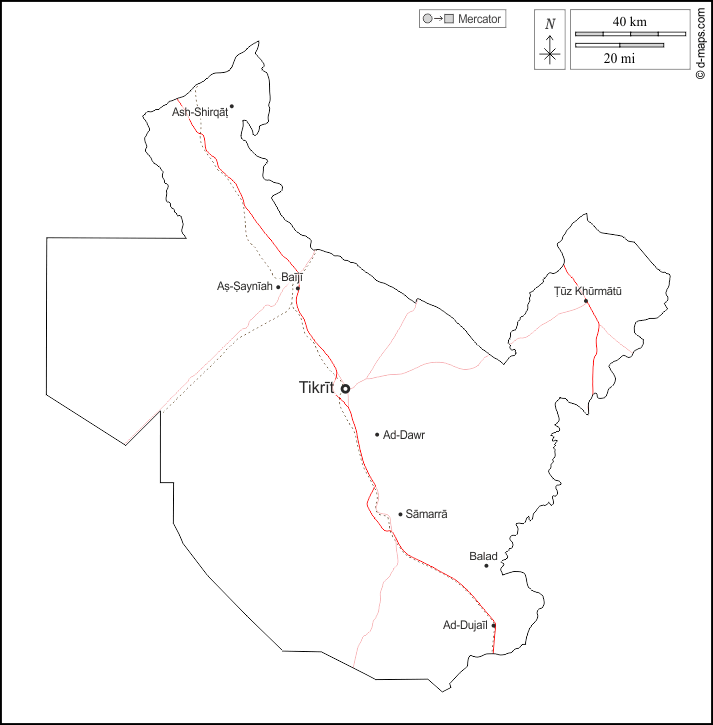 d-maps > एशिया > इराक > सलादीन > बाह्यरेखा, मुख्य शहरों, सड़कों, नाम, सफेद