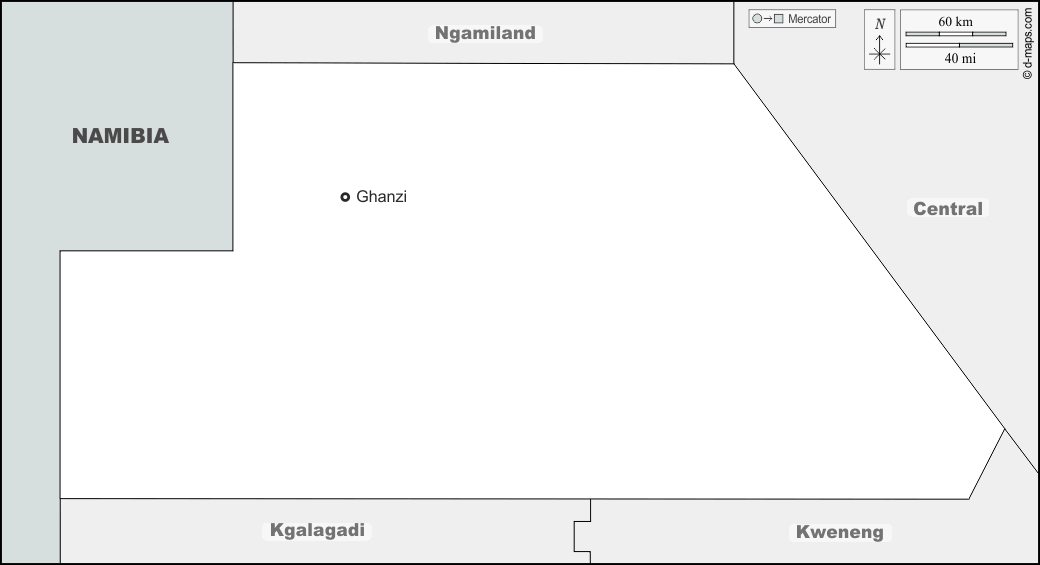d-maps > अफ्रीका > बोत्सवाना > घांज़ी > सीमाओं, मुख्य शहरों, नाम