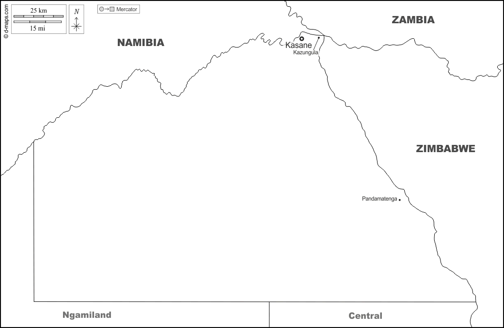 d-maps > अफ्रीका > बोत्सवाना > कोबे > सीमाओं, मुख्य शहरों, नाम, सफेद