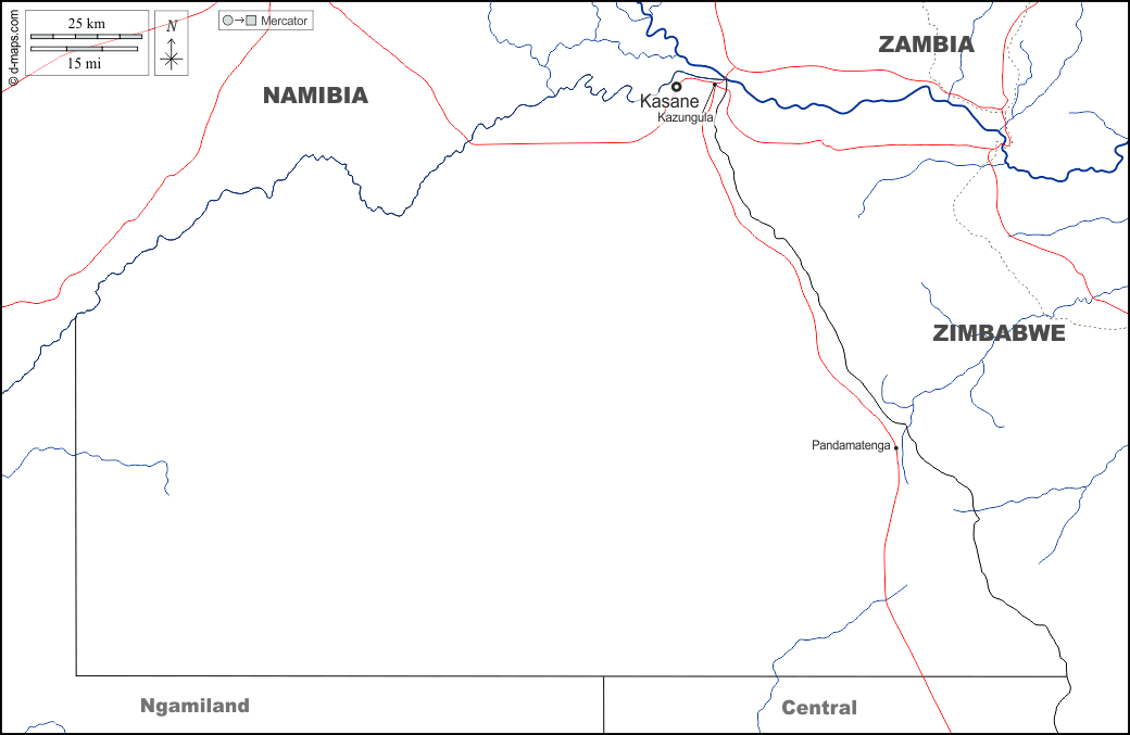 d-maps > अफ्रीका > बोत्सवाना > कोबे > सीमाओं, जल-सर्वेक्षण, मुख्य शहरों, सड़कों, नाम, सफेद