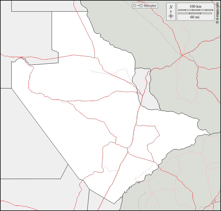d-maps > अफ्रीका > बोत्सवाना > सेंट्रल ज़िला > सीमाओं, सड़कों
