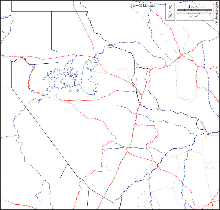 d-maps > अफ्रीका > बोत्सवाना > सेंट्रल ज़िला > सीमाओं, जल-सर्वेक्षण, सड़कों, सफेद