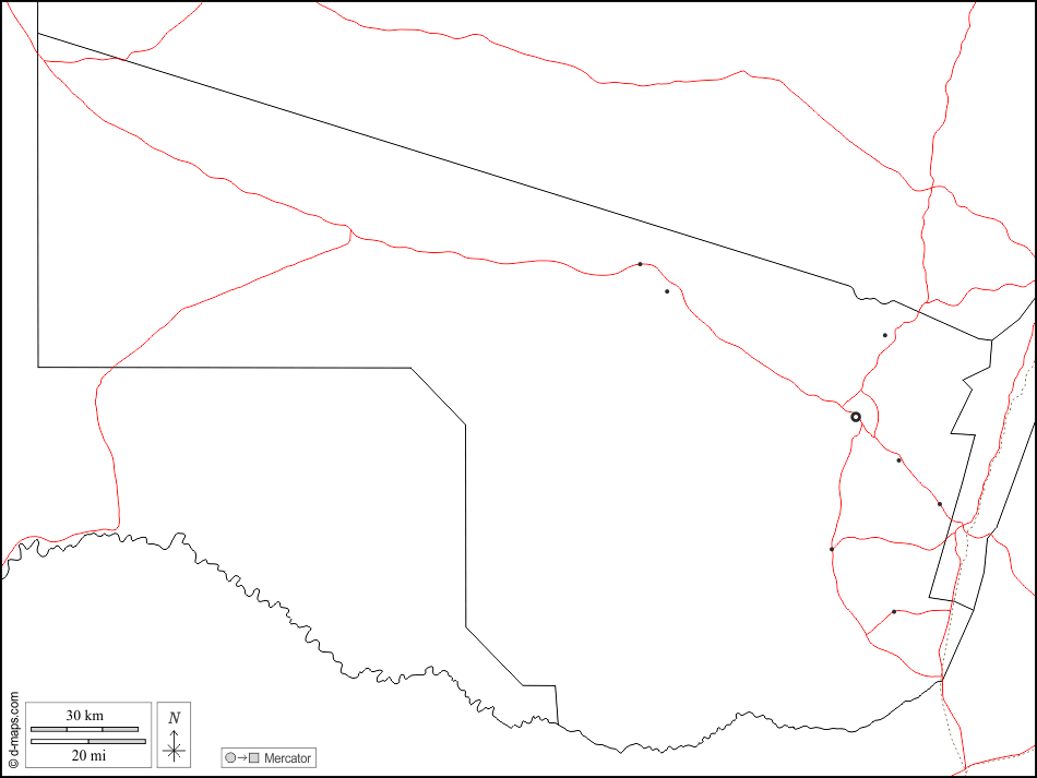 d-maps > अफ्रीका > बोत्सवाना > दक्षिण > सीमाओं, मुख्य शहरों, सड़कों, सफेद