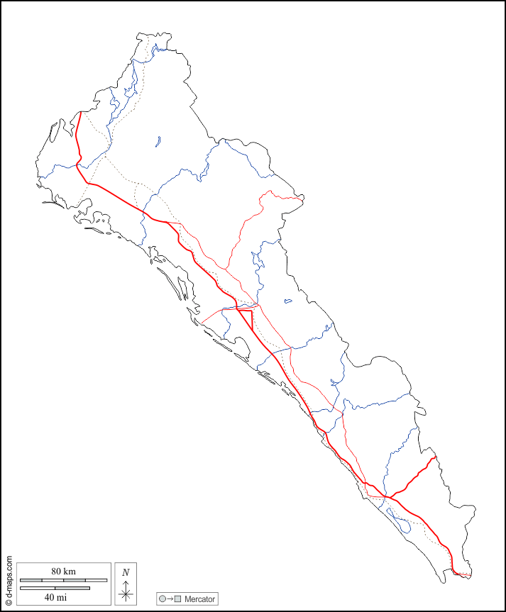 d-maps > महाअमेरिका > मेक्सिको > सिनालोआ > बाह्यरेखा, जल-सर्वेक्षण, सड़कों, सफेद