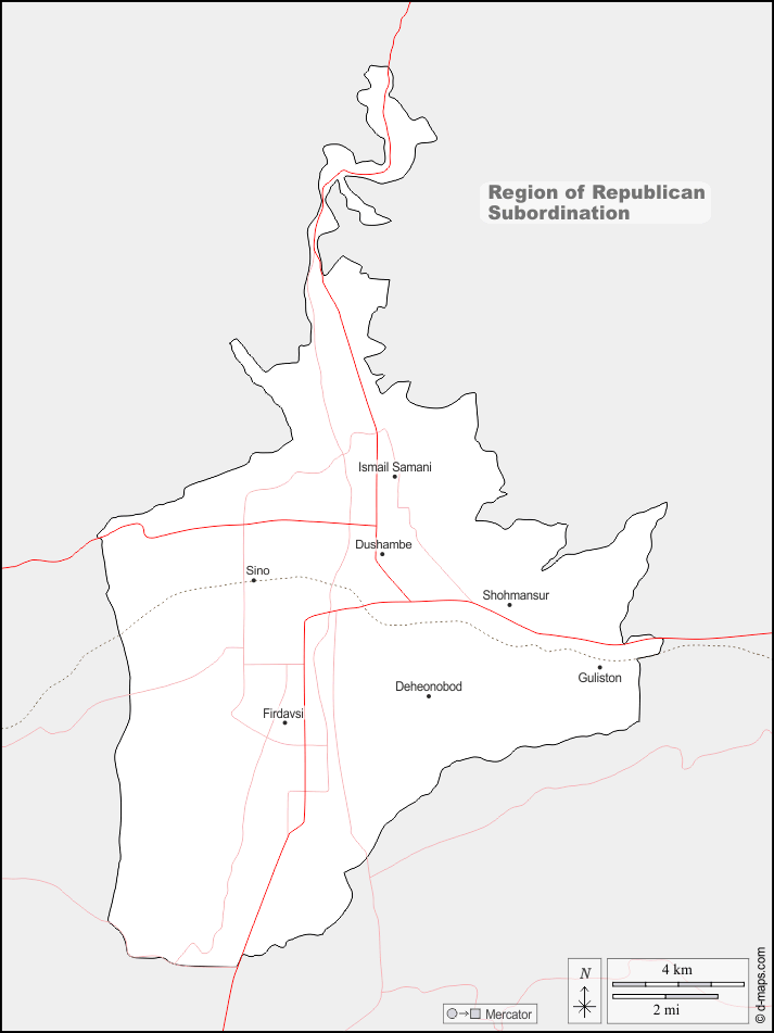 d-maps > एशिया > ताजिकिस्तान > दुशान्बे > सीमाओं, मुख्य शहरों, सड़कों, नाम
