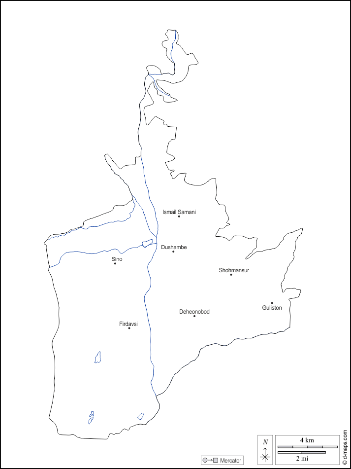 d-maps > एशिया > ताजिकिस्तान > दुशान्बे > बाह्यरेखा, जल-सर्वेक्षण, मुख्य शहरों, नाम, सफेद